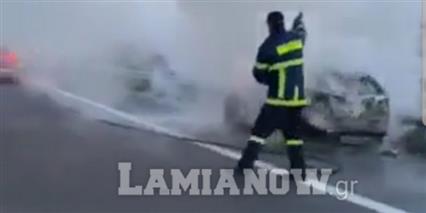 Φθιώτιδα: Αυτοκίνητο τυλίχθηκε στις φλόγες στην Αρκίτσα (vid)