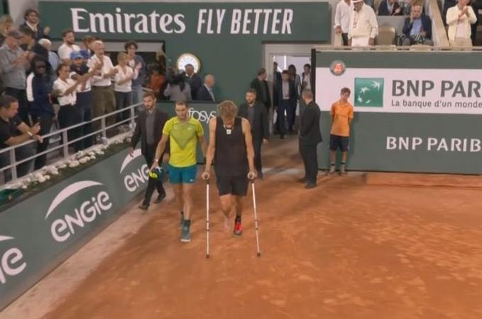 Ο Σάσα Ζβέρεφ στο φινάλε του δεύτερου σετ κι ενώ θα έπαιζε και πάλι τάι μπρέικ με τον Ράφα Ναδάλ, έπειτα από μια επική μάχη τριών ωρών, είχε έναν σοβαρό τραυματισμό στον αστράγαλο με αποτέλεσμα να εγκαταλείψει και να στείλει τον Ισπανό σε ακόμα έναν τελικό.