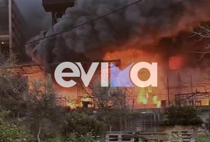 Η φωτιά ξεκίνησε από κηροπλαστείο που βρίσκεται σε υπόγειο χώρο στην περιοχή της Αγίας Μαρίνας στη Χαλκίδα και επεκτάθηκε γρήγορα στο ισόγειο