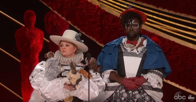 Η Μελίσα Μακάρθι βγήκε στη σκηνή των Όσκαρ ντυμένη Ολίβια Κόλμαν στην Ευνοούμενη του Γιώργου Λάνθιμου - λίγο αργότερα η Κόλμαν κέρδισε Όσκαρ