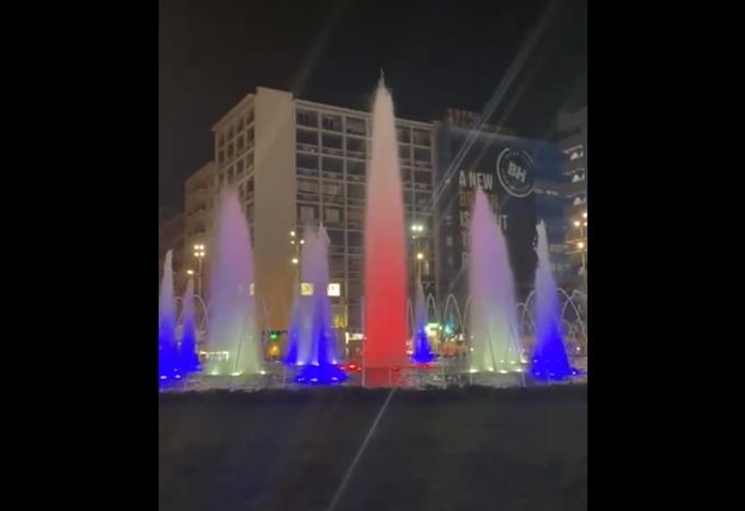 Σιντριβάνι στην Ομόνοια: Στα χρώματα της Γαλλίας ως αλληλεγγύη στις τρομοκρατικές επιθέσεις