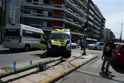 Όπως φαίνεται από τις φωτογραφίες, η σύγκρουση ήταν σφοδρή, με αποτέλεσμα το ασθενοφόρο να υποστεί σοβαρές ζημιές