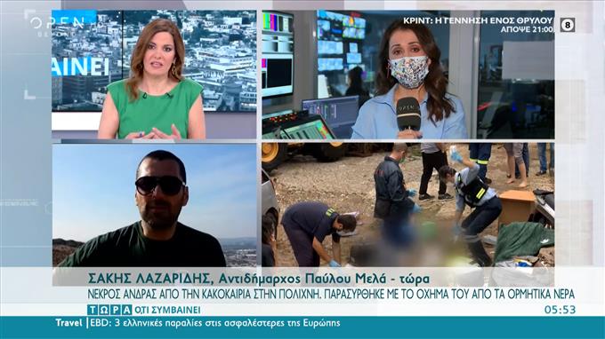 Ο αντιδήμαρχος Παύλου Μελά, Σάκης Λαζαρίδης για την τραγωδία - Νεκρός άνδρας από την κακοκαιρία στην Πολίχνη (vid)Τραγωδία σημειώθηκε στην Θεσσαλονίκη όπου ένας άνδρας παρασύρθηκε με το όχημά του από τα ορμητικά νερά και σκοτώθηκε, εξαιτίας της κακοκαιρίας στην περιοχή της Πολίχνης. Ο αντιδήμαρχος Παύλου Μελά, Σάκης Λαζαρίδης μίλησε για το τραγικό αυτό συμβάν.