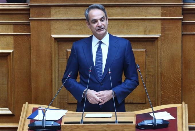 Από το βήμα της Βουλής ο Κυριάκος Μητσοτάκης ενημέρωσε το σώμα για την εξωτερική πολιτική κατά τη διάρκεια της συζήτησης σε επίπεδο πολιτικών αρχηγών