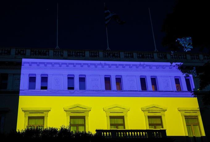 «Ελάχιστη ένδειξη αλληλεγγύης και συμπαράστασης προς τον ουκρανικό λαό» - Στα χρώματα της Ουκρανίας φωταγωγήθηκε το Προεδρικό Μέγαρο