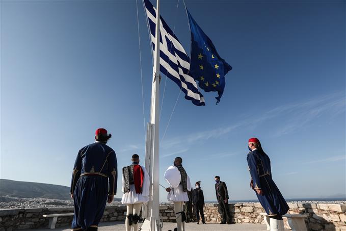 Ημέρα της Ευρώπης: Έπαρση ελληνικής και ευρωπαϊκής σημαίας στην Ακρόπολη παρουσία Σακελλαροπούλου