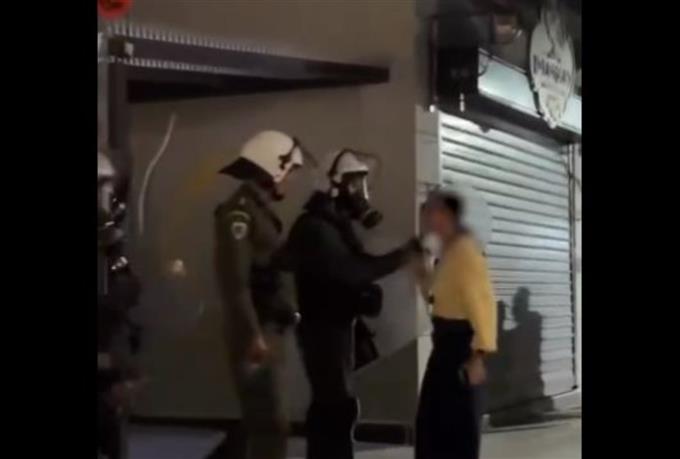 Σάλο έχει προκαλέσει βίντεο που δείχνει άνδρα των ΜΑΤ να σπρώχνει και να χτυπάει γυναίκα ενώ μετά ξεσπά σε άλλους περαστικούς