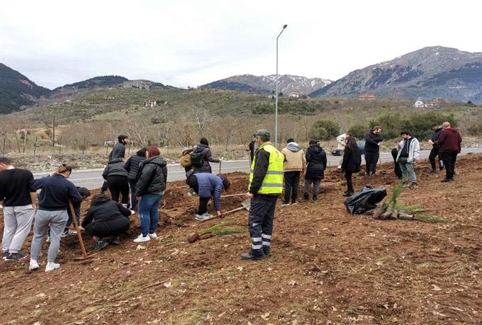 Καρπενήσι: Φοιτητές και εκπαιδευτικοί φύτεψαν 57 κυπαρίσσια στη μνήμη των νεκρών στα Τέμπη