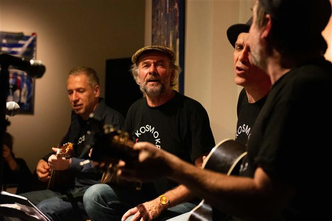 Ο Φρανς Ντε Κλερκ σερβίρει ικαριώτικο κρασί στις Βρυξέλλες και μαζί με δύο ακόμη Βέλγους και έναν Έλληνα τραγουδούν ως "Kosmokratores" γνωστά ρεμπέτικα στα ελληνικά, τα γαλλικά και τα ολλανδικά!