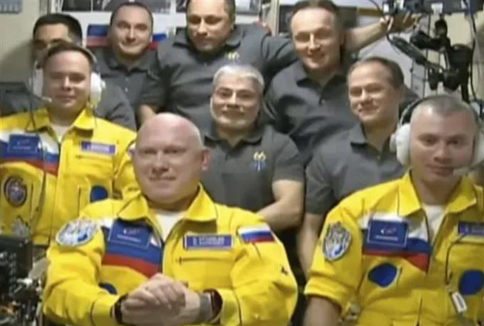 Αίσθηση έχει προκαλέσει η κίνηση τριών Ρώσων κοσμοναυτών που έφτασαν στον Διεθνή Διαστημικό Σταθμό φορώντας κίτρινες στολές με μπλε πινελιές, τα χρώματα της ουκρανικής σημαίας