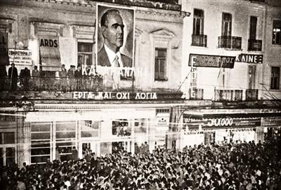 Η ΕΡΕ μεταλλάχτηκε σε Νέα Δημοκρατία- ιδρυθείσα το 1974 από τον Κωνσταντίνο Καραμανλή- μετά τη Μεταπολίτευση