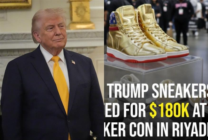 Ο πρόεδρος των ΗΠΑ δημοσίευσε στο Truth Social ότι ένα ζευγάρι από τα «Never Surrender» υψηλής κοπής sneakers του πωλείται στην τιμή των 180.000 δολαρίων σε μια εκδήλωση Sneaker Con στο Ριάντ της Σαουδικής Αραβίας.