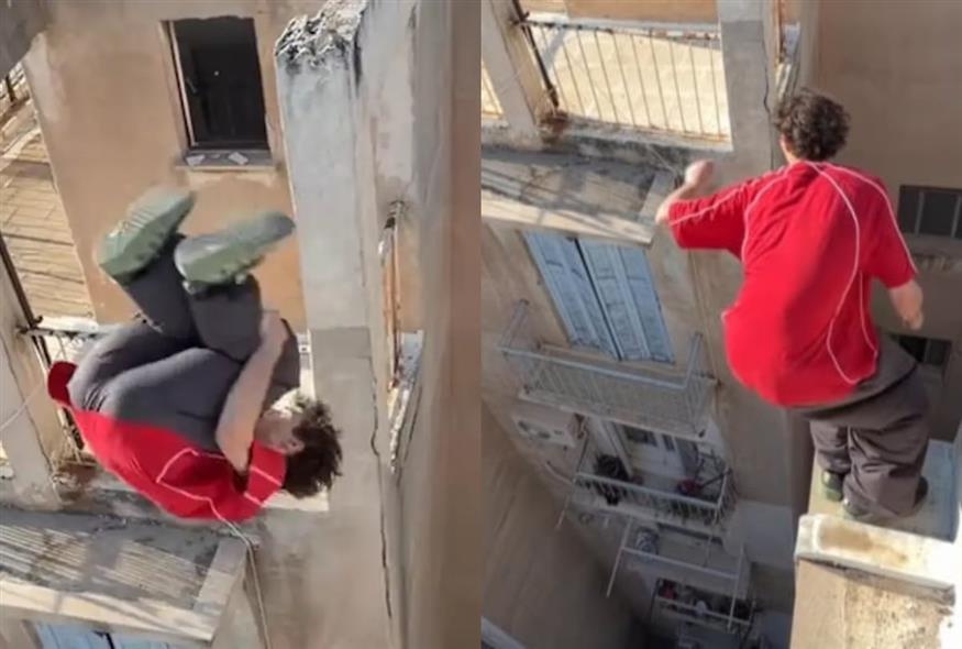 Δέος πάνω από τις αθηναϊκές ταράτσες: Viral τα άλματα Γάλλου αθλητή του παρκούρ